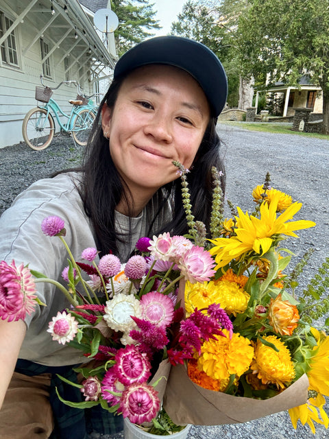 At Wing Ming Farm, there’s no middleman — just flowers grown with care, passed directly from our hands to yours. When you choose local flowers, you know where they come from and who grew them. Every bloom is cut fresh, grown using regenerative practices that nourish the soil, support pollinators, and reduce our carbon footprint.